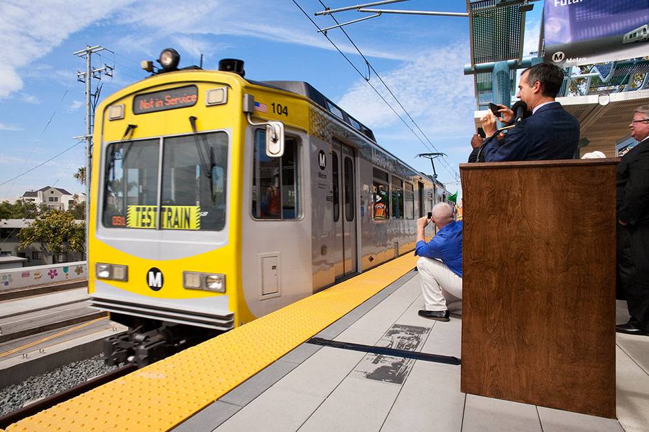 Local dignitaries and media gathered behind the yellow line, craning their necks to get a glimpse at the future of public transportation as a test train pulled into the station and everyone hopped aboard.