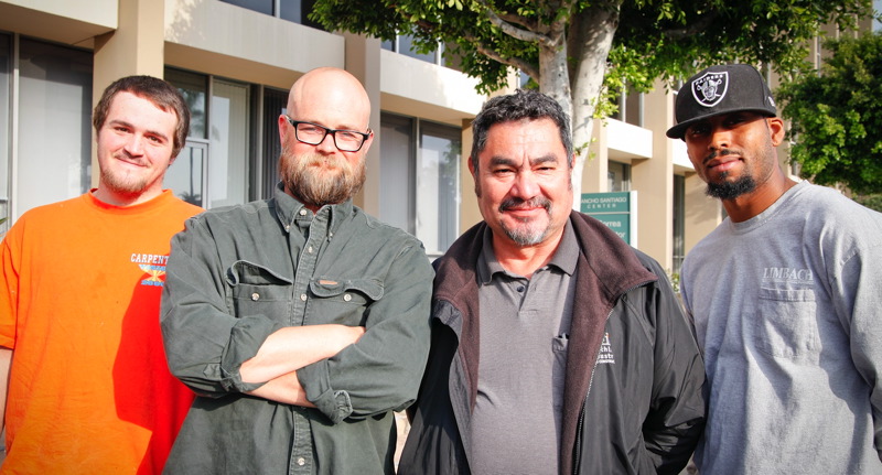L-R, Corey Miller, Carpenters Local 2361, and Kirk Halonen, Valente Rios and Brandon Moss, all of UA Local 582 Plumbers & Fitters.
